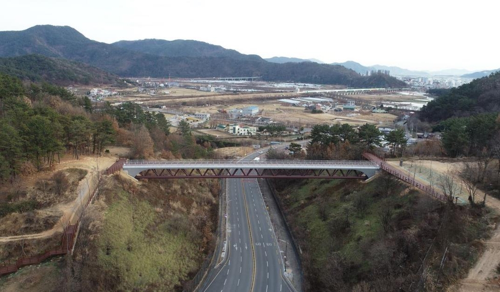 밀양시는 지난해 12월 도로 관통 구간에 길이 88m짜리 보도교를 설치해 단절된 숲길을 이었다.