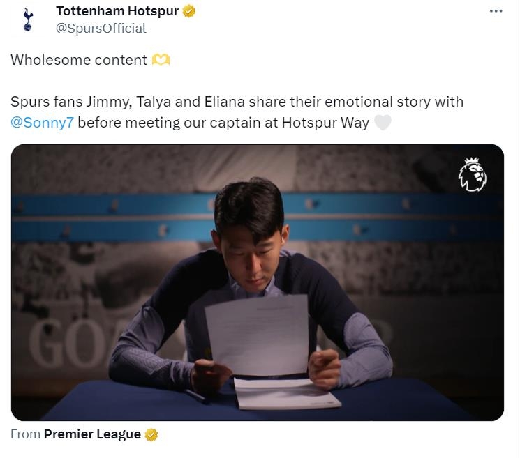 토트넘은 20일(현지시간) 구단 사회관계망서비스(SNS)를 통해 '팬 메일'이라는 영상을 공개했다.