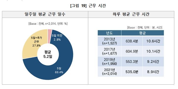 "하루 평균 8.9시간 근무…직업 만족도 2년 전보다 소폭 상승"