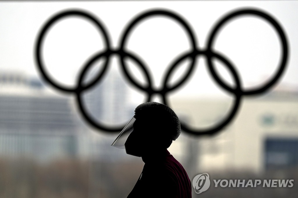 | ▲ This Associated Press photo shows a jogger in front of an installation near the Beijing Olympic Park in Beijing on Jan. 25, 2022. (Yonhap) |