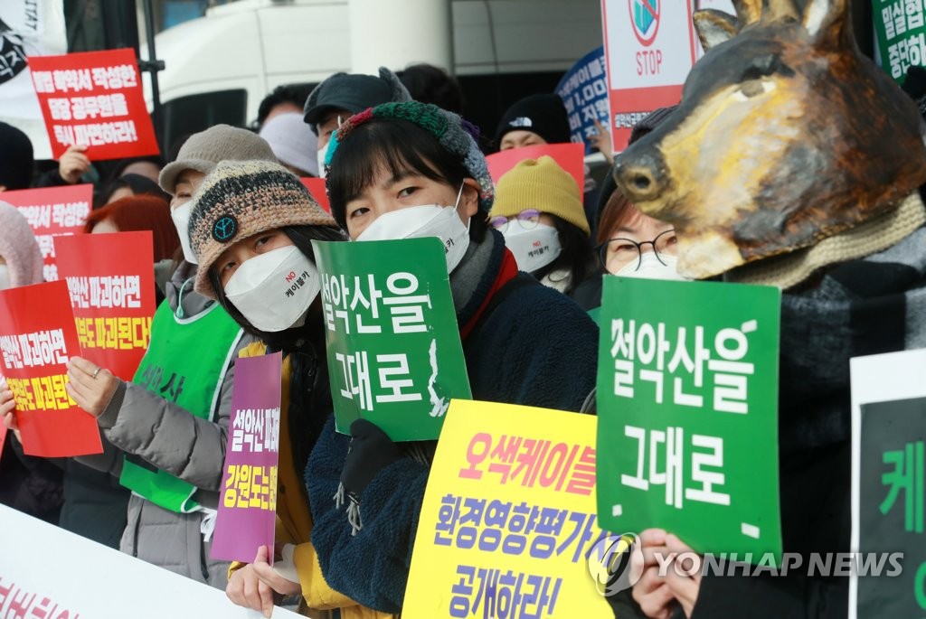 이들은 회견문에서 "설악산이 온전하게 보존될 수 있는 유일한 방법은 현재 검토되고 있는 환경영향평가서가 다시 부동의 되는 것뿐"이라며 "설악산의 자연생태계를 보호하는 것은 환경부의 책임과 의무"라고 주장했다.