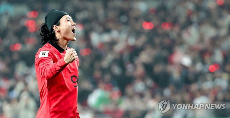 | ▲ 선취골 넣고 환호하는 조규성 (서울=연합뉴스) 김인철 기자 = 16일 서울 마포구 서울월드컵경기장에서 열린 2026 북중미 월드컵 아시아지역 2차 예선 C조 1차전 한국과 싱가포르의 경기. 선취골을 넣은 조규성이 환호하고 있다. 2023.11.16 yatoya@yna.co.kr |