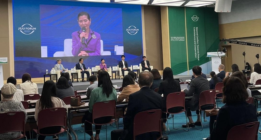 | ▲ 제주포럼 공공외교 세미나서 발표하는 유미 호건 미 메릴랜드 주지사 퍼스트레이디 [재외동포재단 제공] |