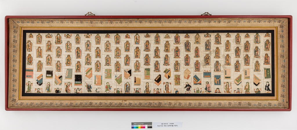 1979년 보물로 지정된 이 유물은 부처, 경전, 존자 등 불교에서 말하는 세 가지 보물 125개의 도상을 수 놓은 작품이다. 실제 착용 목적이 아니라 예불을 위해 만든 것으로 추정된다.