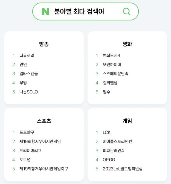 '더글로리·범죄도시3·LCK'…올해 분야별 네이버 최다 검색어
