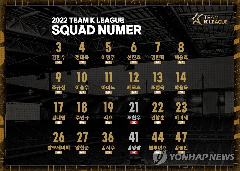 | ▲ This image provided by the Korea Professional Football League (K League) on July 11, 2022, shows numbers for members of Team K League, which will face Tottenham Hotspur in an exhibition match at Seoul World Cup Stadium in Seoul on July 13, 2022. (PHOTO NOT FOR SALE) (Yonhap) |