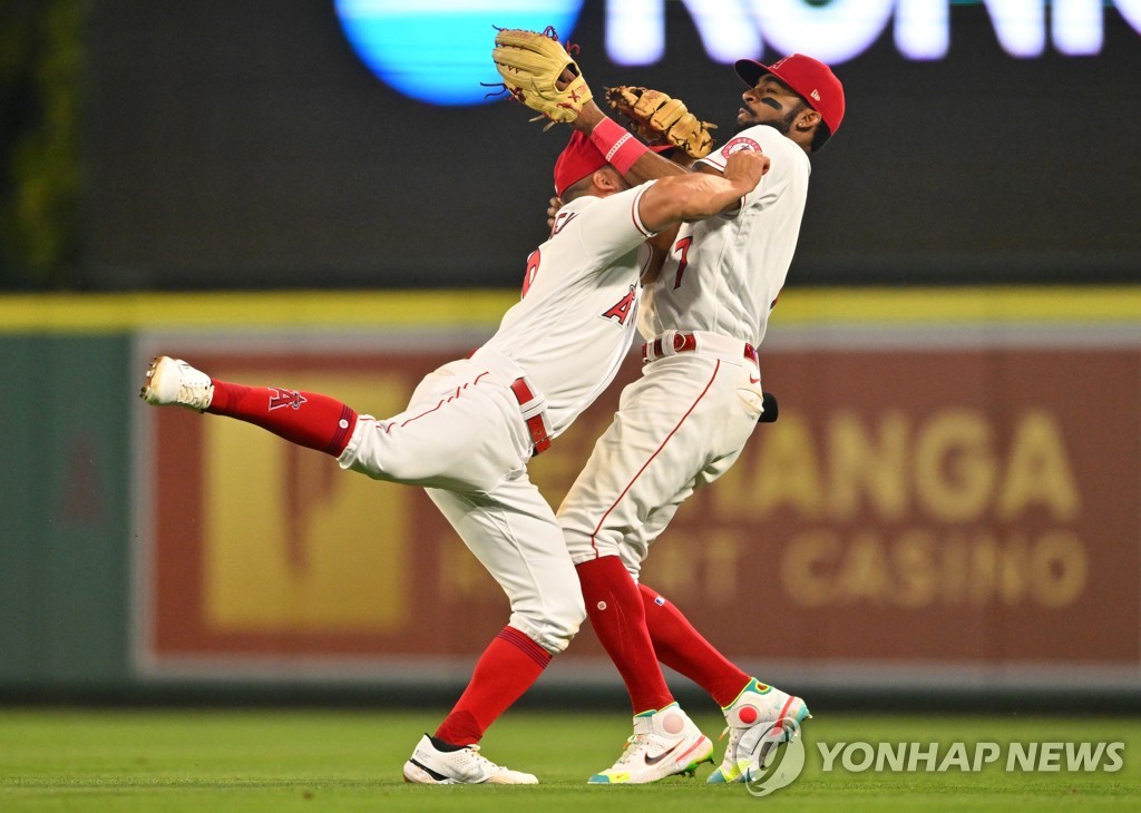 | ▲ 수비 도중 충돌한 로스앤젤레스 에인절스 선수들 [USA TODAY=연합뉴스] |