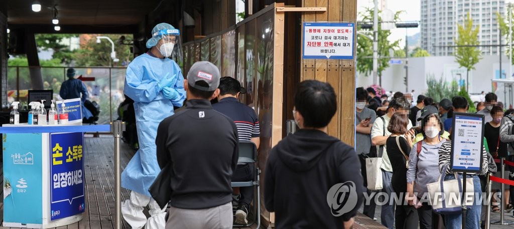| ▲ A medical worker watches people waiting in line to receive coronavirus tests at a screening clinic in Seoul's Songpa Ward, in the Sept. 27, 2021, file photo. (Yonhap) |