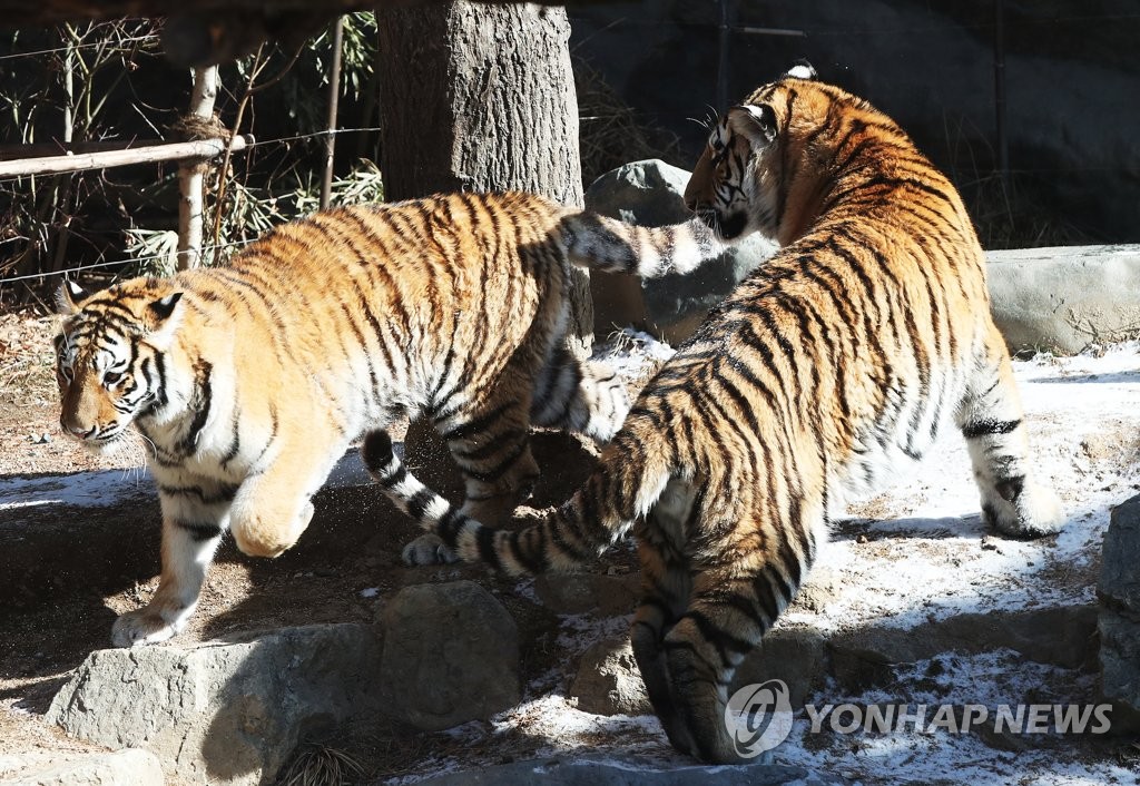 | ▲ 추위가 즐거운 에버랜드 한국호랑이들 [연합뉴스 자료 사진] |