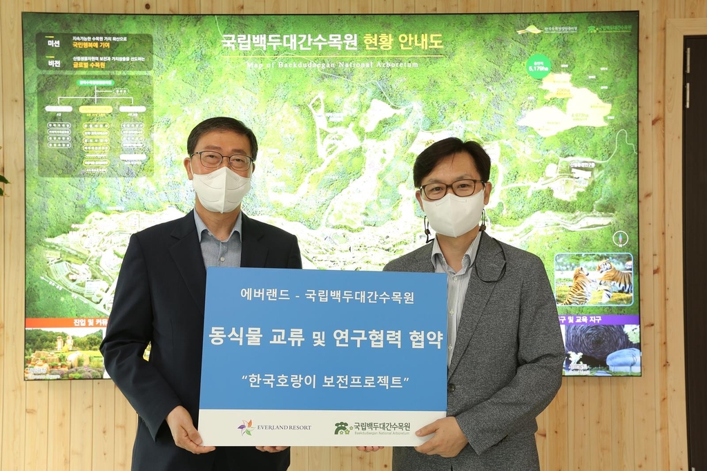 이종건 국립백두대간수목원장은 "한국호랑이 보전 프로젝트를 계기로 다양한 동식물 분야로 에버랜드와의 협력을 확대할 것"이라고 했다.