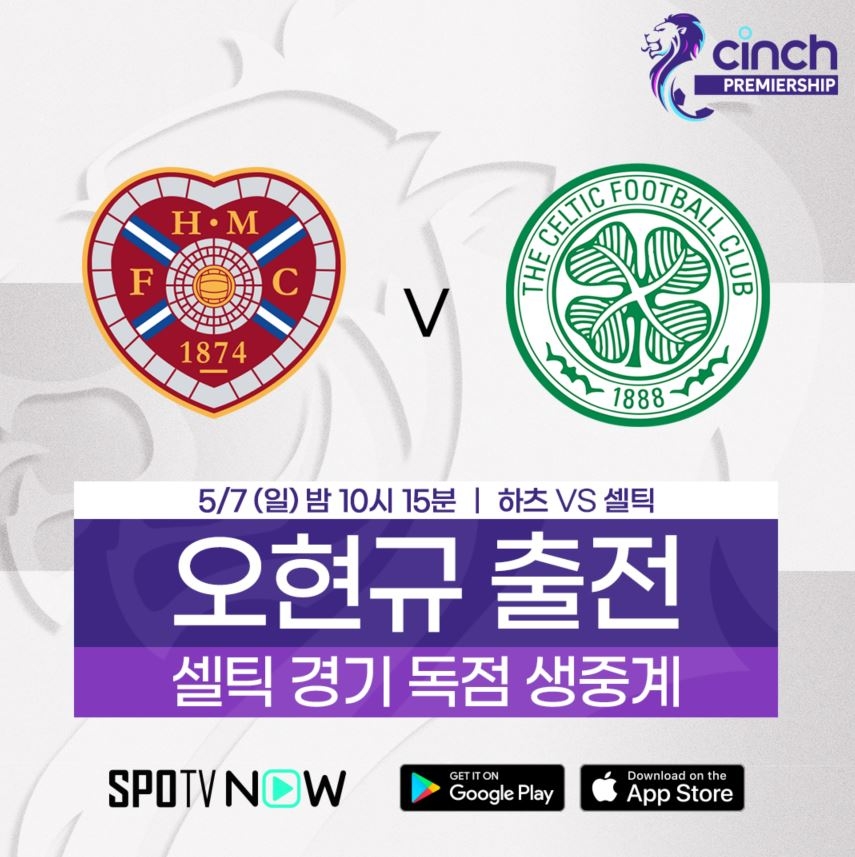 셀틱과 하츠의 경기는 SPOTV ON과 SPOTV NOW에서 생중계한다.