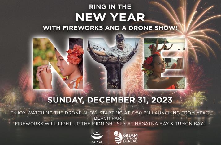 드론쇼는 투몬만에서 31일 밤 11시 50분부터 약 9분간 진행되며, 이어 1일 0시부터는 이파오 해변 공원과 하갓냐 만 등 두 곳에서 밤하늘을 화려하게 수놓는 불꽃놀이가 펼쳐질 예정이다.