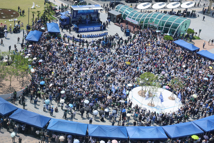 Lee Jae-myung in DaeguLee Jae-myung of the liberal Democratic Party speaks during his campaign trail stop in Daegu on June 1, 2025. (Yonhap)(END)