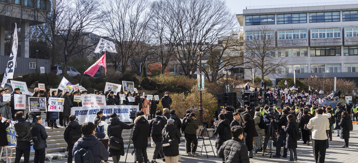 Rallies for and against President Yoon Suk Yeol's impeachment are simultaneously held on the campus of Seoul National University in southern Seoul on Feb. 17, 2025. (Yonhap)