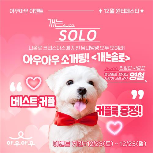아우아우는 특히 크리스마스를 맞아 23∼25일 3일간 반려견 소개팅 '개는 솔로 반려견 소개팅'을 진행한다.
