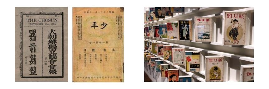 | ▲ 근현대 잡지들 1896년 창간된 '대조선독립협회회보'와 1908년 창간된 우리나라 근대 종합잡지 효시 '소년'(왼쪽) [한국잡지협회 제공] |