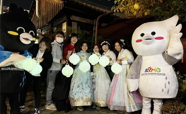 | ▲ 외국인들 전통한복 체험 [2023 전북 아태마스터스대회 조직위 제공] |