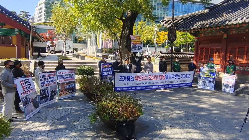 | ▲ 조계종 해고 조합원, '원직 복직' 촉구 1인 시위 (서울=연합뉴스) 조계종 노조 해고 조합원 박정규 씨가 지난 9일 서울 강남의 봉은사 앞에서 원직 복직 촉구 1인 시위를 벌이고 있다. 2022.10.25 [조계종 노조 제공. 재배포 및 DB금지] (끝) |