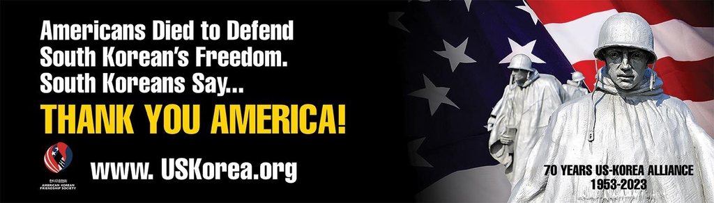 박 회장은 "한국인들은 3년간의 참혹한 한국전쟁(1950~1953년)에서 생명과 자유를 위해 싸운 미군 병사들에게 항상 감사한다"며 "내년에도 빌보드 감사 광고는 이어질 것"이라고 말했다.