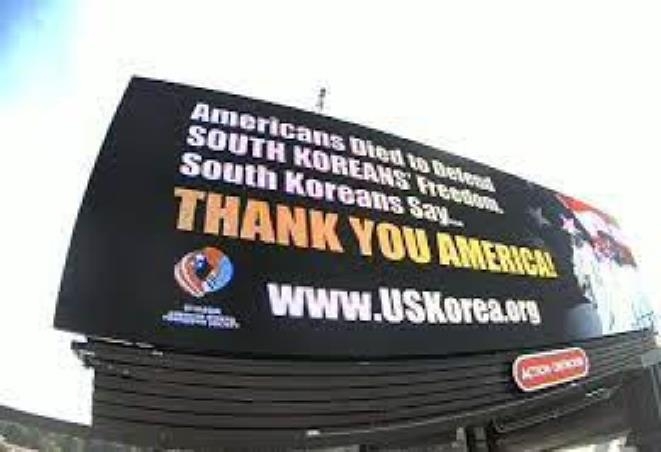 | ▲ 한국전쟁 참전에 감사하는 빌보드 광고 [한미우호협회 제공] |