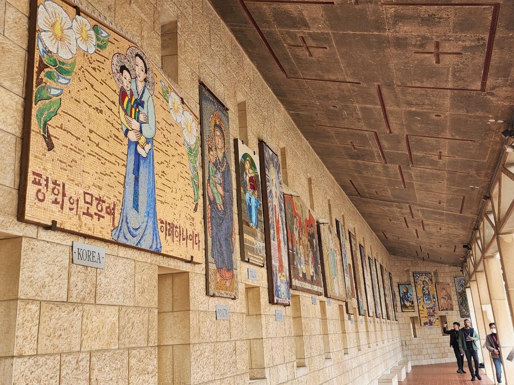 | ▲ 나사렛 '수태고지' 벽면 장식한 한국 성화 (나사렛=연합뉴스) 양정우 기자 = 29일(현지시간) 이스라엘 북부 나사렛에 있는 '수태고지' 교회 외벽에는 한복을 입은 마리아와 예수의 모습을 담은 한국 성화가 걸려 있다. 2022.11.30 eddie@yna.co.kr (끝) |