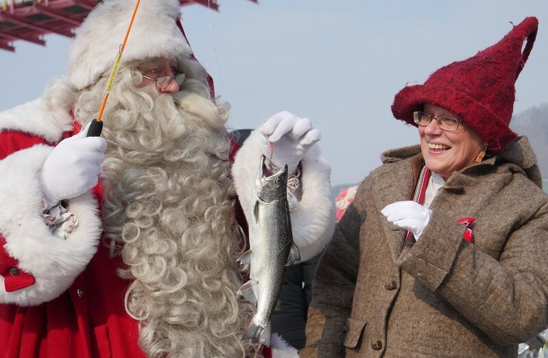 | ▲ 지난 2020년 산천어축제를 방문한 핀란드 로바니에미시 산타의 낚시 체험 [화천군 제공.재판매 및 DB 금지] |