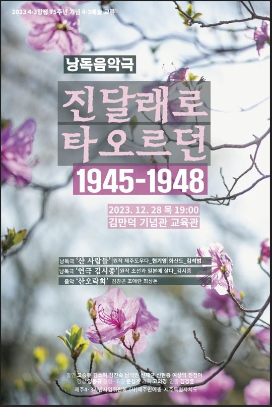 (제주=연합뉴스) 제주4·3기념사업위원회와 제주민예총은 28일 오후 7시 제주시에 있는 김만덕기념관에서 낭독음악극 '진달래로 타오르던 1945∼1948' 공연을 공동 개최한다.