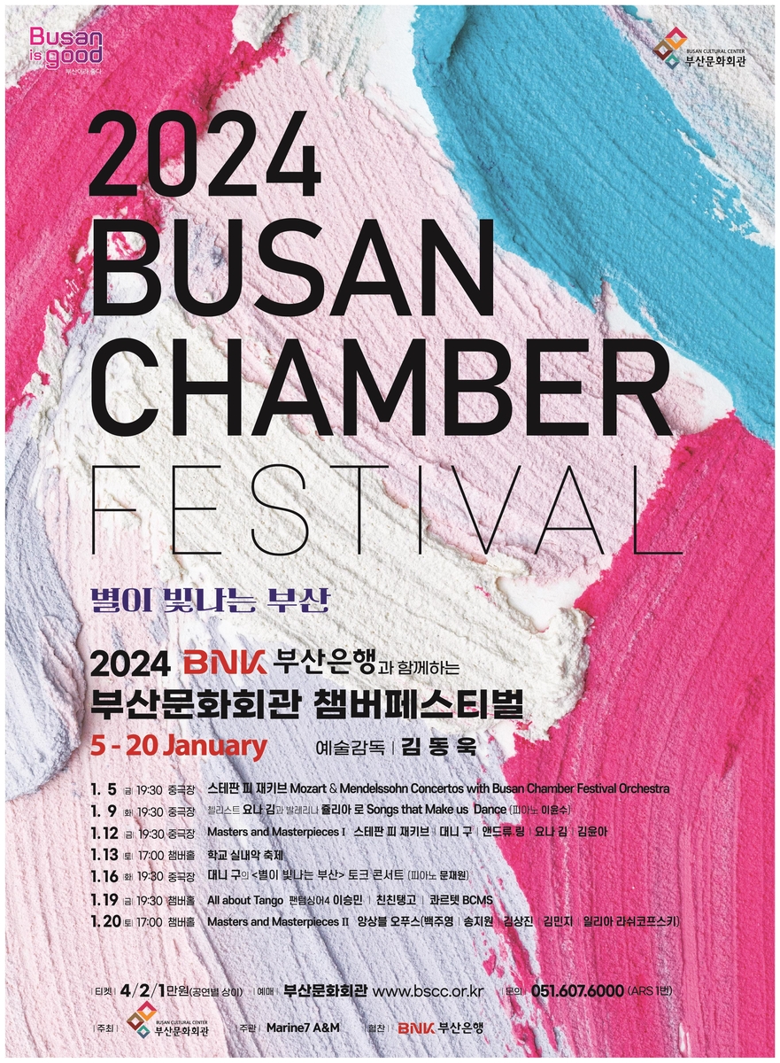 이어 13일에는 대학 실내악 축제, 16일에는 대니 구의 '별이 빛나는 부산' 토크 콘서트, 19일에는 '이승민 X 친친탱고 X 콰르텟 BCMS'의 무대가 이어진다.