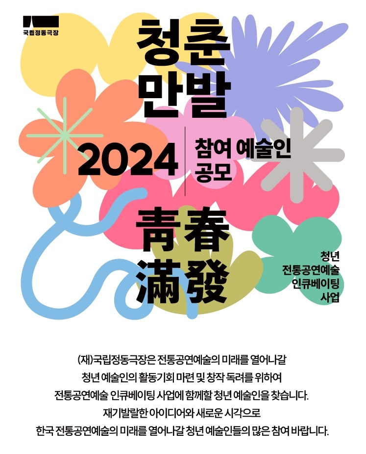 | ▲ 국립정동극장 청춘만발 2024년 참여 예술인 공모 [국립정동극장 제공. 재판매 및 DB 금지] |