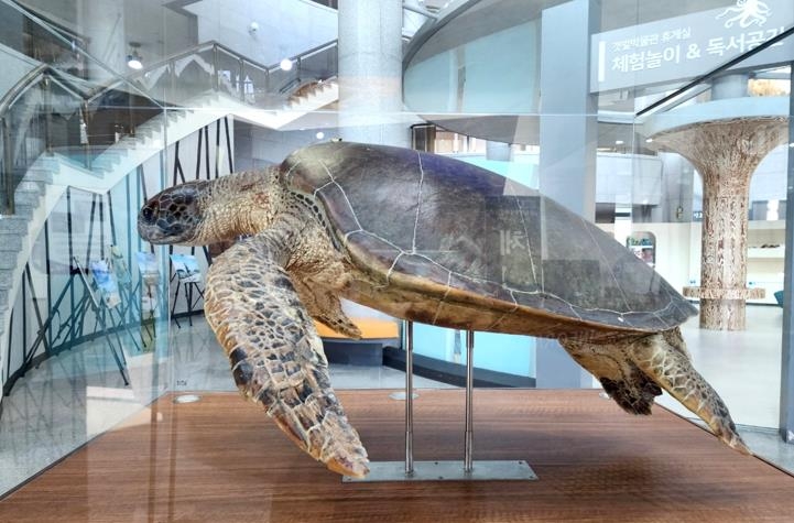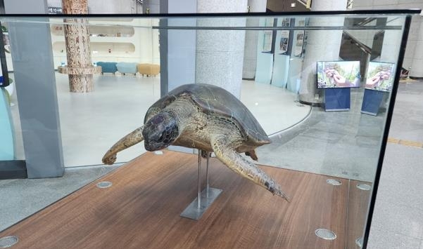 (신안=연합뉴스) 조근영 기자 = 전남 신안군은 국제적 멸종위기종으로 국내 최대 크기의 푸른바다거북 표본을 신안갯벌박물관에 상시 전시한다고 18일 밝혔다.