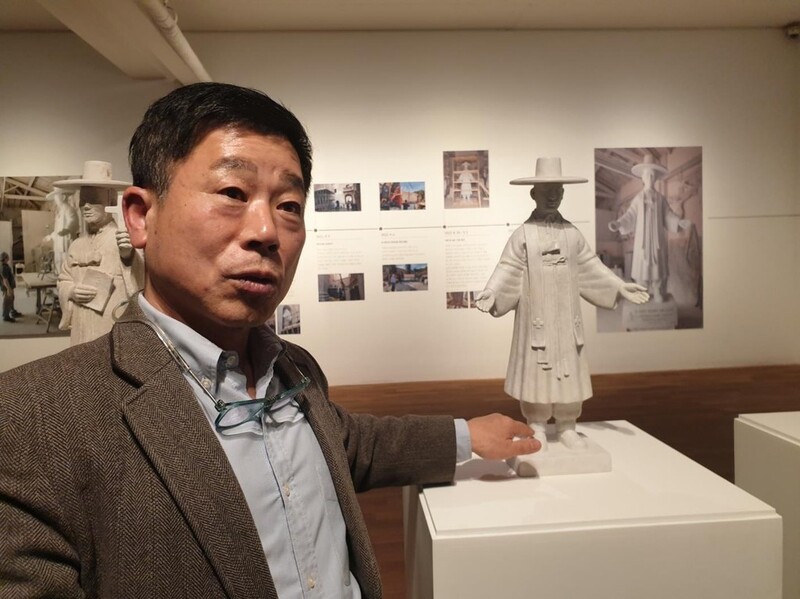 15일 서울 가나아트센터에서 시작하는 개인전을 앞두고 전시장에서 만난 한 작가는 김대건 신부 조각상이 성 베드로 대성전에 설치되기까지는 신기할 정도로 여러 기적 같은 일들이 계속 일어났다고 설명했다.