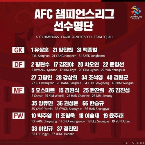 | ▲ FC서울 AFC 챔피언스리그 출전 선수 명단 [FC서울 인스타그램 캡처. 재판매 및 DB 금지] |