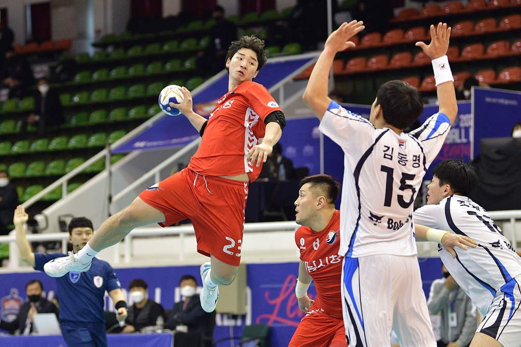 하남시청은 9일 충북 청주 올림픽국민생활관에서 열린 2020-2021 SK핸드볼 코리아리그 남자부 3라운드 두산과 경기에서 25-24로 승리했다.