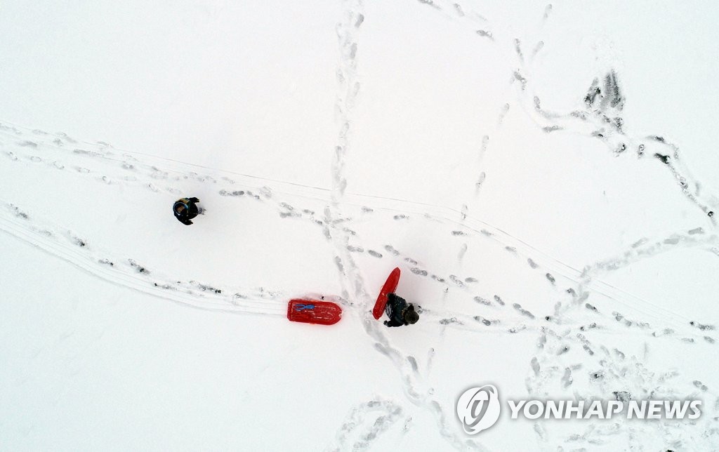 | ▲ 눈이 반가운 발자국 (광주=연합뉴스) 박철홍 기자 = 광주·전남 곳곳에 대설·한파·강풍 특보가 발효된 7일 오전 광주 북구 전남대학교 교정에서 엄마와 함께 한 아이가 썰매를 타고 있다. 2021.1.7 pch80@yna.co.kr |