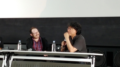 (서울=연합뉴스) 이영재 기자 = 세계적인 거장 반열에 오른 봉준호 감독과 독창적인 공포 영화로 주목받는 미국의 아리 애스터 감독이 관객들과 함께 한자리에서 만났다.