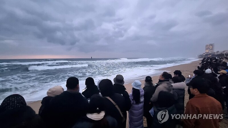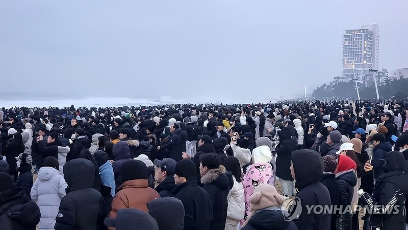 이들은 새벽부터 가족, 연인과 함께 방한 용품으로 중무장한 채 추위를 견디며 해돋이만을 기다렸으나 이날 해상에 구름이 낮게 깔리면서 새해 첫 태양은 구름 뒤에 숨어버렸다.
