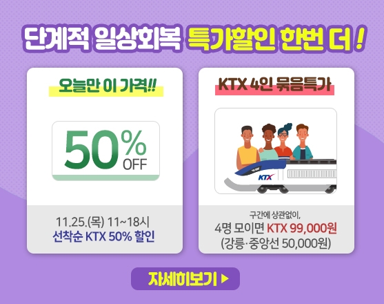 'KTX 50% 할인·4인 묶음 특가' 상품, 25일 하루 재판매