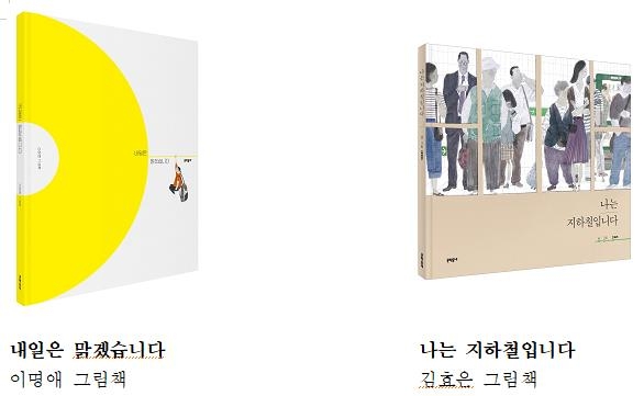 (서울=연합뉴스) 이은정 기자 = 이명애 작가 그림책 '내일은 맑겠습니다'와 김효은 작가 그림책 '나는 지하철입니다'가 주요 국제 그림책상을 나란히 받았다.