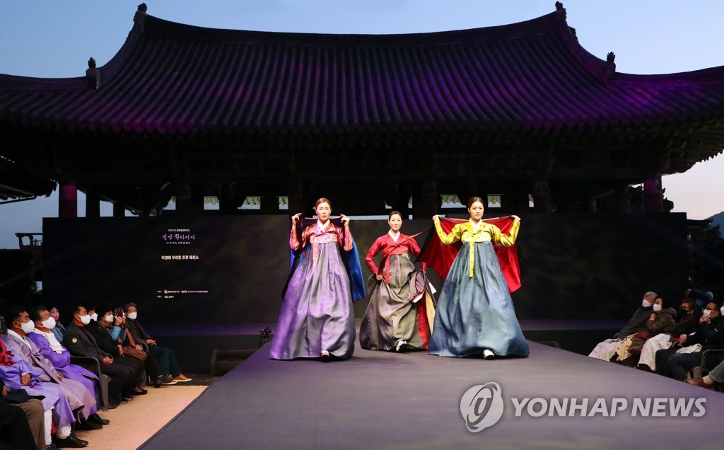 밀양시가 22일 영남루 앞마당에서 한복 패션쇼를 했다.