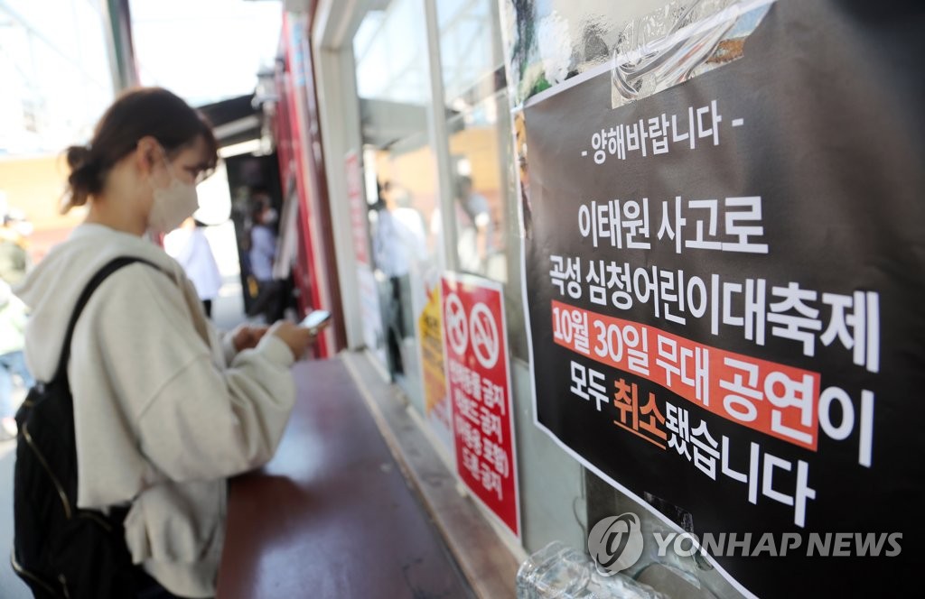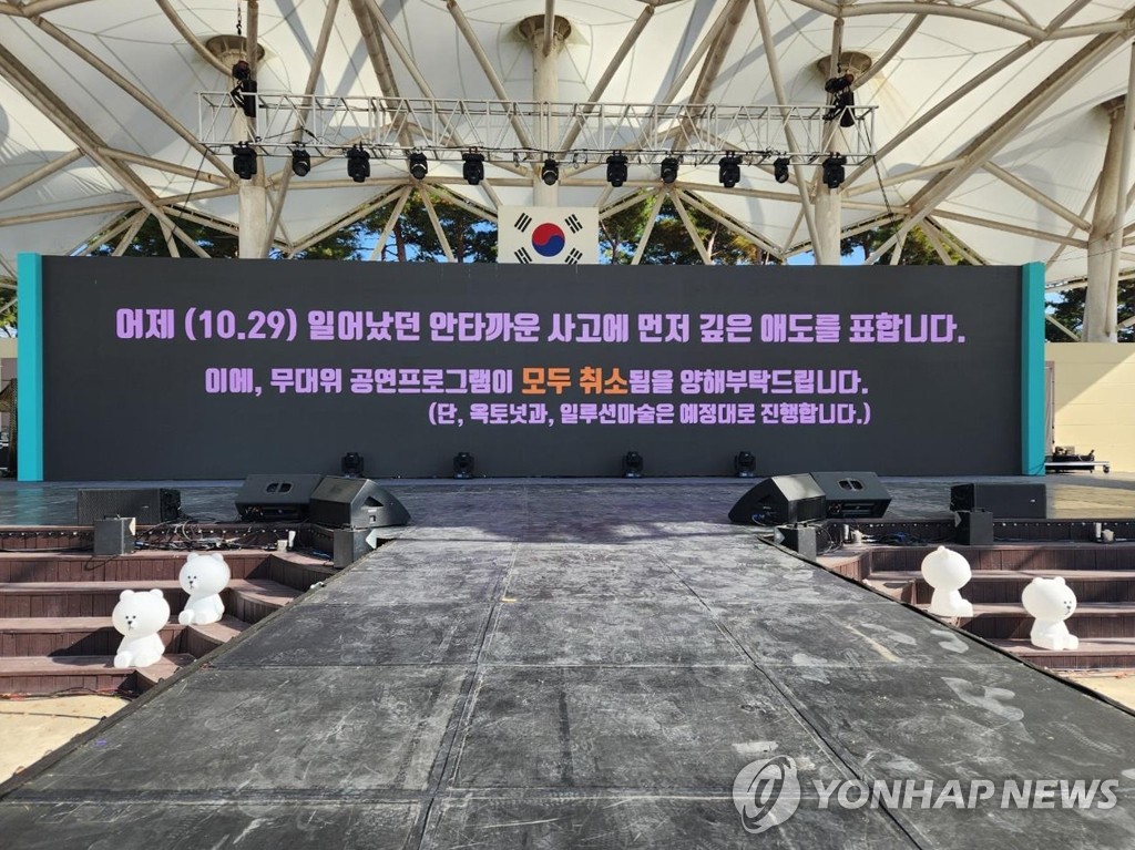 (전국종합=연합뉴스) 서울 이태원에서 핼러윈 압사 참사가 발생함에 따라 전국 곳곳에서 열리고 있거나 열릴 예정인 지역 축제 및 행사 등이 잇따라 축소 또는 취소됐다.