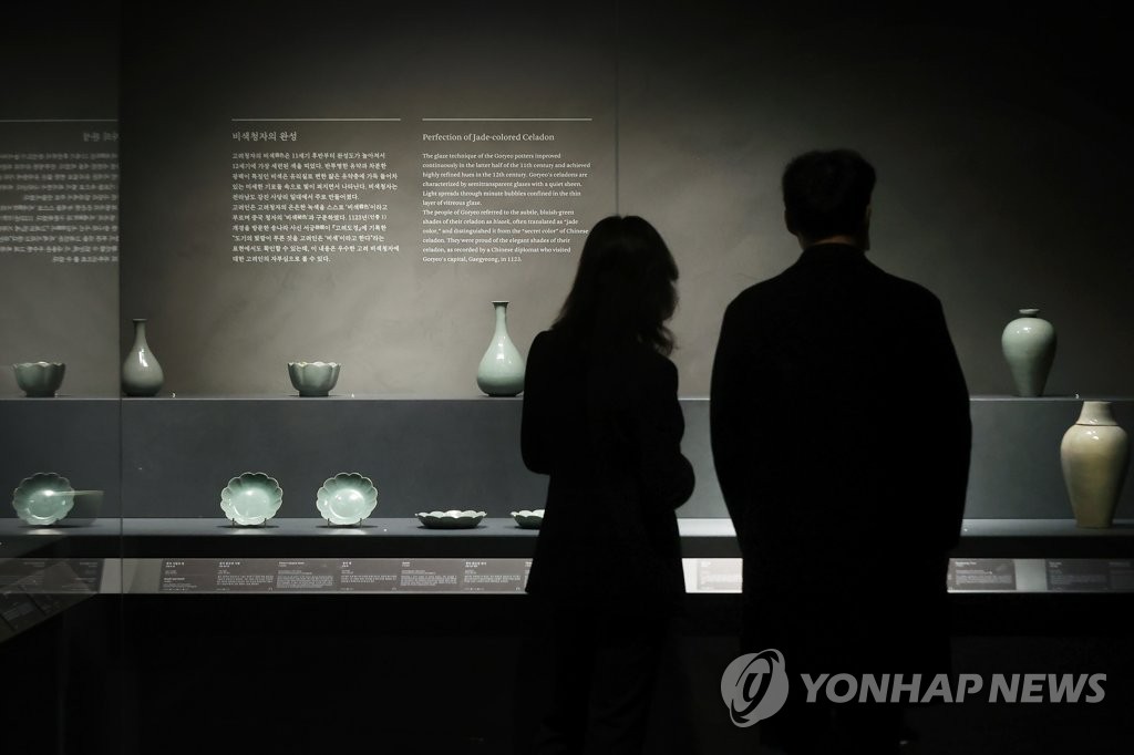 | ▲ 고려비색이란 (서울=연합뉴스) 진연수 기자 = 22일 서울 용산구 국립중앙박물관에서 열린 새롭게 단장한 '청자실' 언론공개회에서 참석자들이 전시공간을 둘러보고 있다. 이번에 개편한 청자실에서는 국보 12점과 보물 12점 등 250여 점을 선보인다. 2022.11.22 jin90@yna.co.kr |