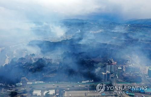 | ▲ 산불 연기 자욱한 강릉 (강릉=연합뉴스) 양지웅 기자 = 11일 대형 산불이 발생한 강원 강릉시 산림 일원에서 연기가 피어오르고 있다. 2023.4.11 yangdoo@yna.co.kr |