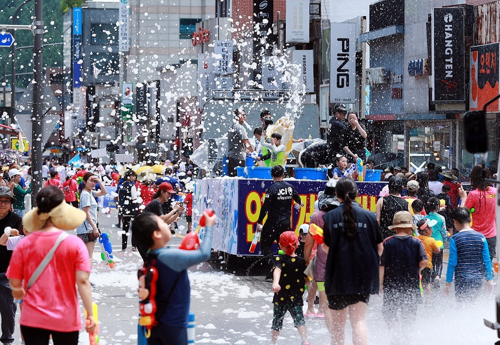 퍼레이드가 끝나면 문화광장 일대에서 물놀이 난장이 이어진다.