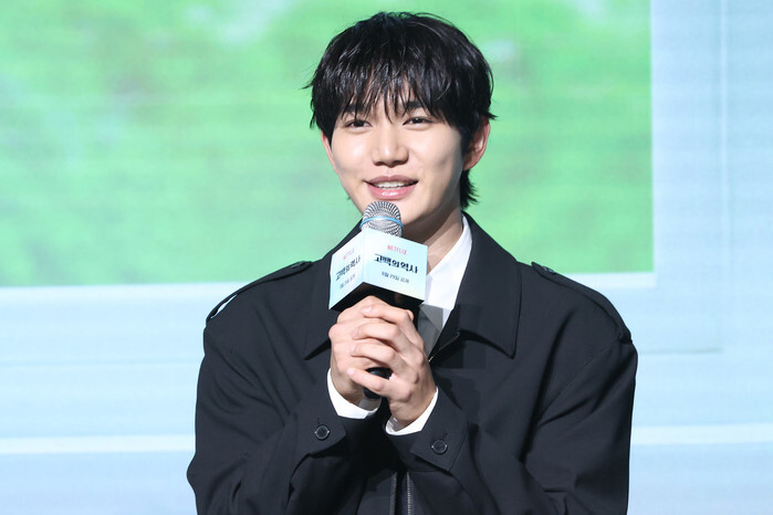 South Korean actor Yoon Sang-hyun, who stars in the new movie "Love Untangled," an original movie by Netflix, attends a publicity event in Seoul on Aug. 25, 2025. The movie will be released worldwide on Aug. 29. (Yonhap)