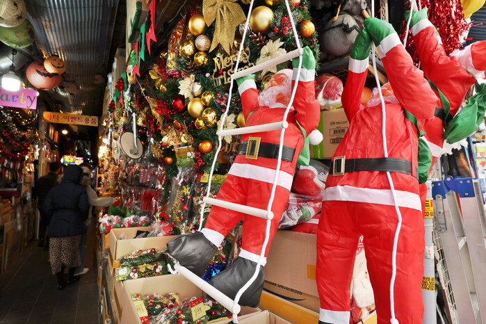 Props for the Christmas season are on display at Namdaemun Market in Seoul on Nov. 17, 2025.