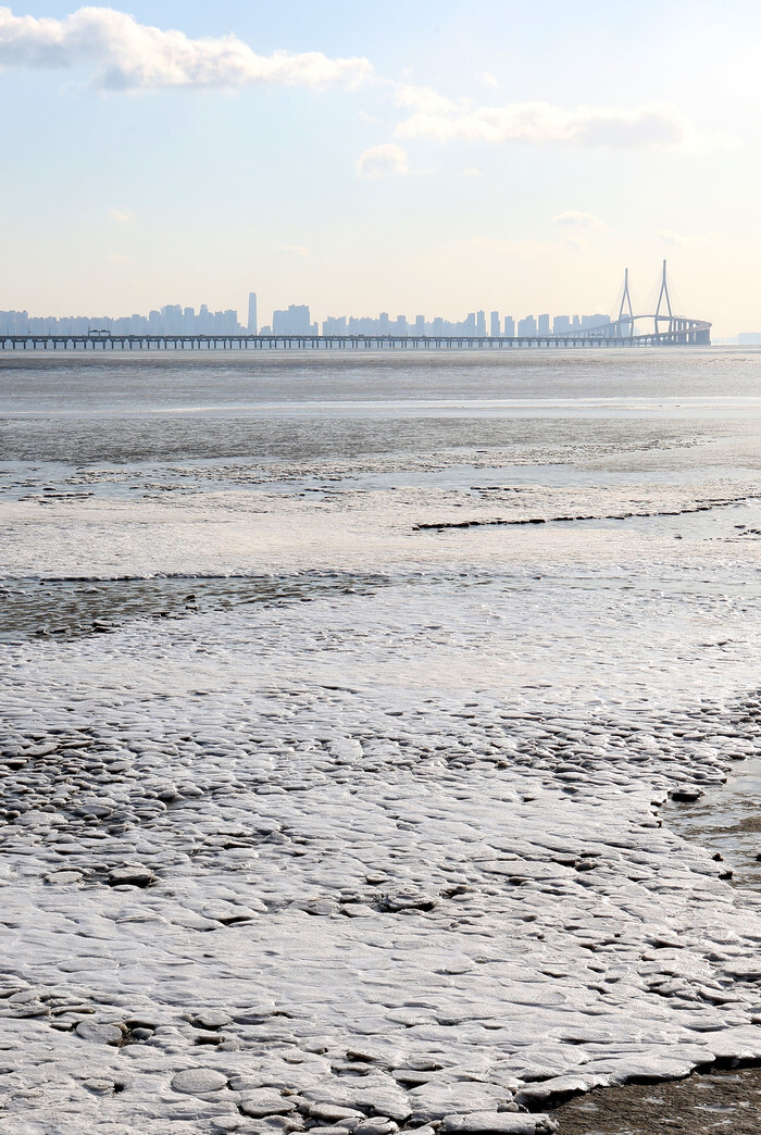 Cold snap This photo, taken Jan. 9, 2025, shows a frozen mudflat on Yeongjong Island off the city of Incheon on South Korea's west coast, as the country is gripped by a cold wave. (Yonhap)(END)