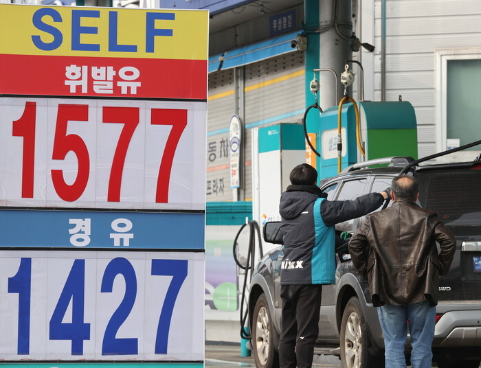 A billboard in front of a gas station in Guri, just east of Seoul, shows the prices of gasoline and diesel on Dec. 1, 2024. The average oil price in South Korea increased for the seventh consecutive week in the fourth week of November, according to data compiled by Korea National Oil Corp. (Yonhap)