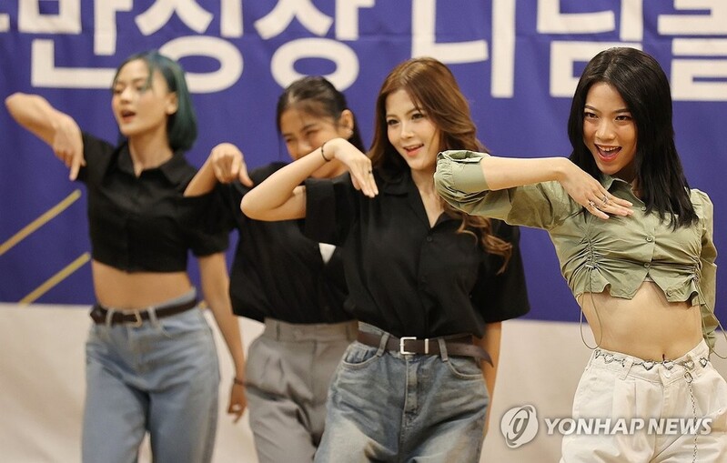 | ▲ '케이인니팝' 선보이는 스타비 (서울=연합뉴스) 이재희 기자 = 30일 오전 서울 중구 충무아트홀에서 열린 '2023 동반성장디딤돌 사업 국내 기자간담회'에서 대상 아티스트로 선정된 인도네시아의 걸그룹 '스타비'(StarBe)가 협업으로 탄생한 곡 '뱅'(Bang)의 무대를 선보이고 있다. 이들은 지난 2일 입국해 약 4개월 간 연수를 마친 뒤 인도네시아로 돌아가 활동을 재개할 예정이다. 2023.8.30 scape@yna.co.kr |