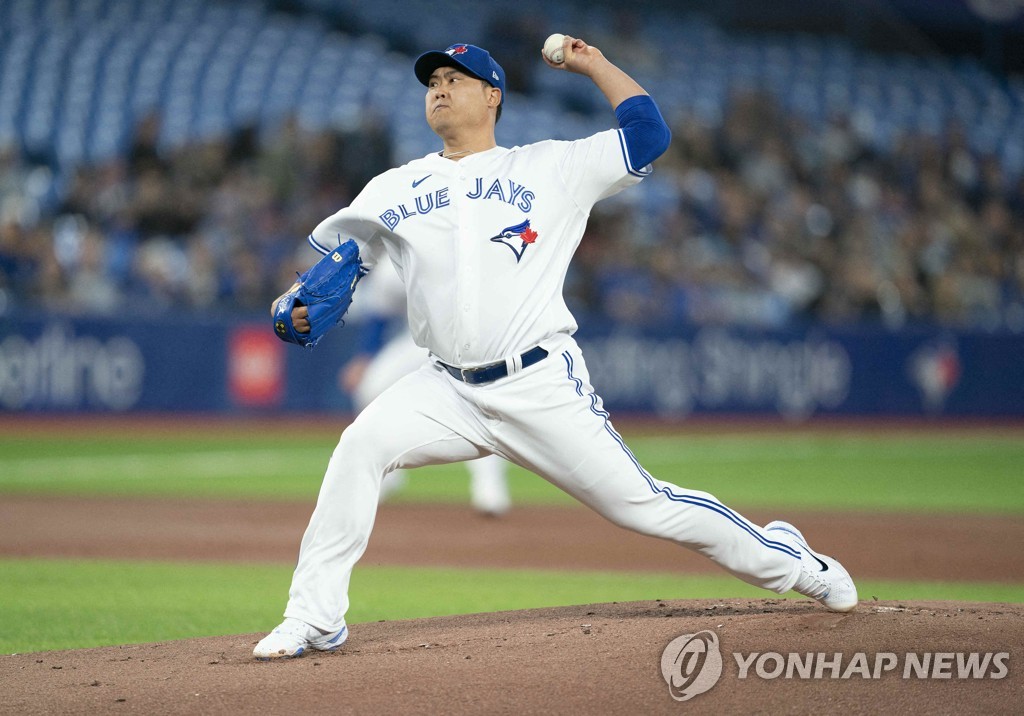 | ▲  In this USA Today Sports file photo via Reuters from April 10, 2022, Ryu Hyun-jin of the Toronto Blue Jays pitches against the Texas Rangers in the top of the second inning of a Major League Baseball regular season game at Rogers Centre in Toronto. (Yonhap) |