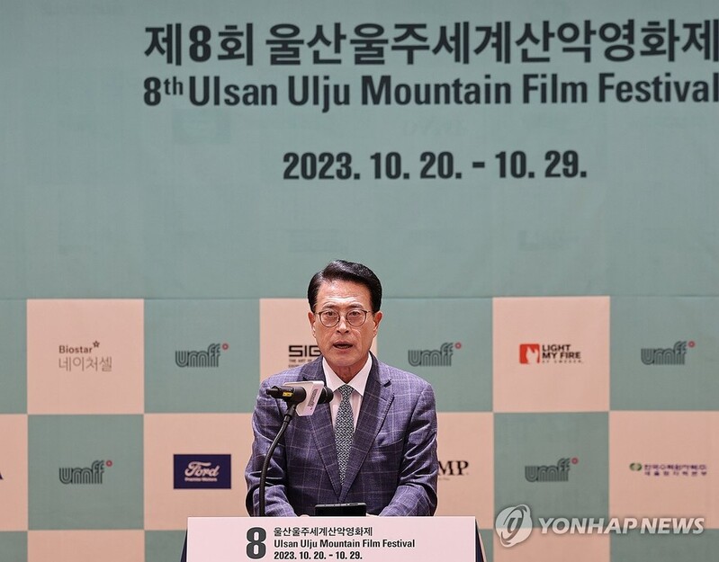 | ▲ 인사말 하는 엄홍길 집행위원장 (울산=연합뉴스) 장지현 기자 = 25일 오전 울산시청 시민홀에서 열린 제8회 울산울주세계산악영화제 기자회견에서 엄홍길 집행위원장이 인사말하고 있다. 2023.9.25 jjang23@yna.co.kr |